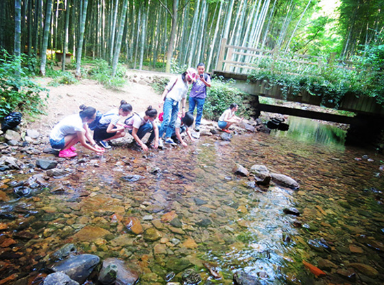 漫步在蔥蔥郁郁的竹林里,感受著大自然給我們的饋贈(zèng),在經(jīng)過(guò)一條小溪流的時(shí)候大家紛紛停下腳步在溪邊嬉戲,好像都回到了童年。